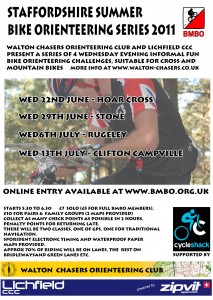 Walton Chasers and Lichfield City Cycling Club, supported by CycleShack, invite you to 4 Wednesday Evening summer informal Bike Orienteering events.