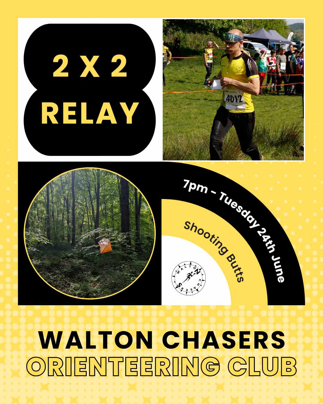 Tonight is the annual 2×2 Relay – short legs of about 2.5km each, two person relay, each person runs two legs. This is the first time this area has been opened up to non WCH members. The area comprises a wooded area and open area and buildings. If you entering a team please email WaltonChasersEvents@gmail.com with your team members , SI number and BOF numbers where appropriate. Individuals can also enter – you will be buddied up on the evening.